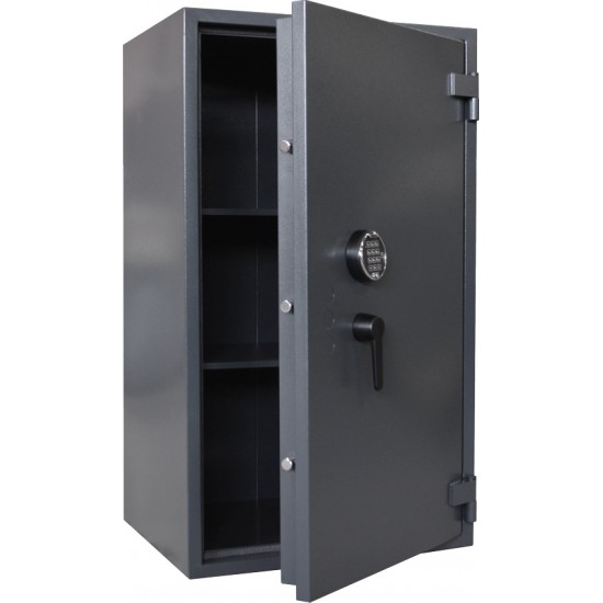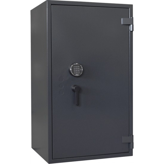 Метален Ормар за безбедно чување на голем број регистри кој Ви нуди заштита против неавторизиран пристап и пожар. Ормарот е изработен со изолација на телото и вратата со огноотпорни материјали (во согласност со DIN 4102) и интегрирана заптивка на рамката од вратата. Вклучени се полици кој се подесуваат висински.